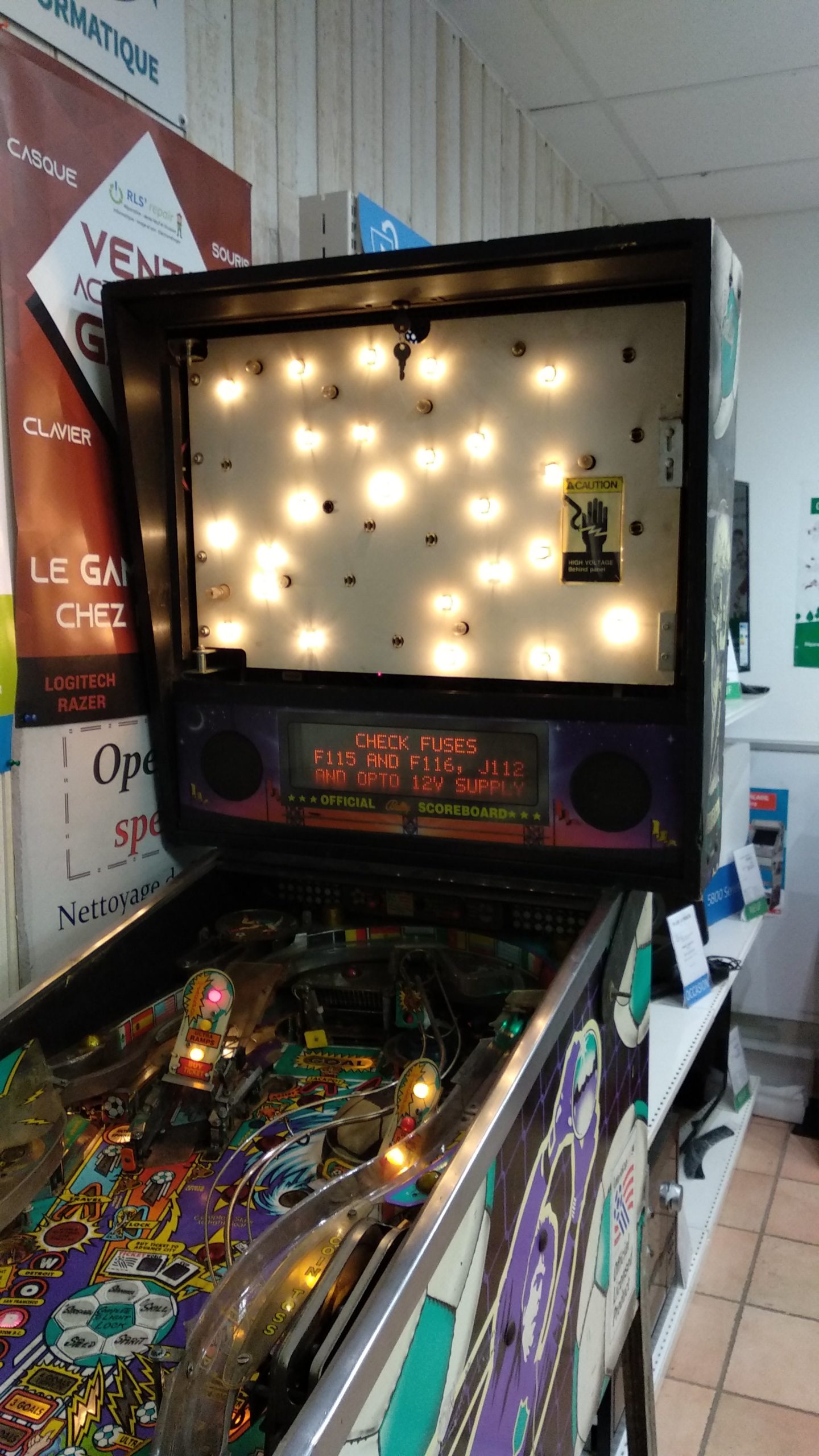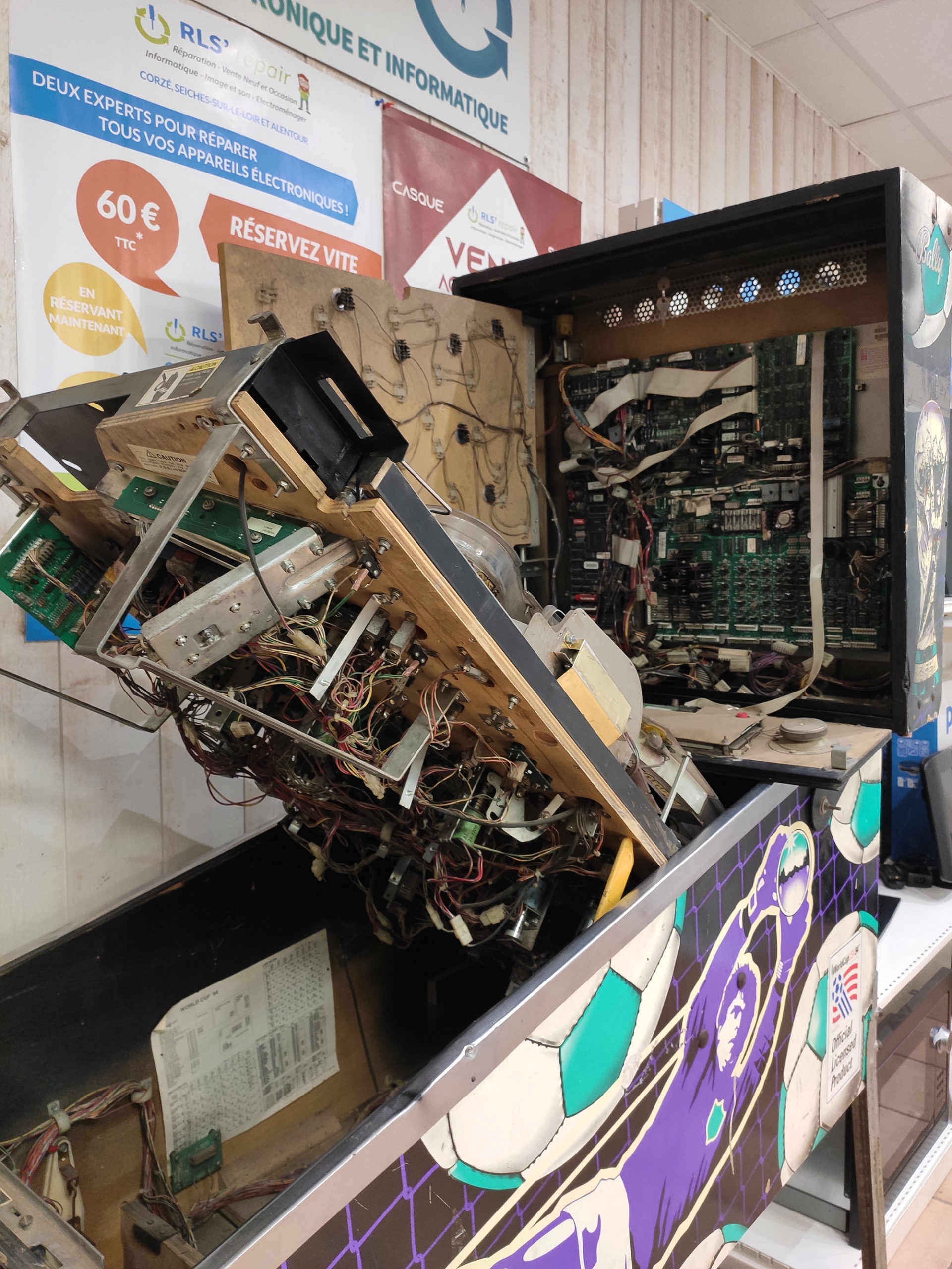 RLS’Repair a eu pour mission de réparer un flipper datant de 1994 avec pour thème la coupe du monde de football de 1994 ayant eu lieu aux USA.