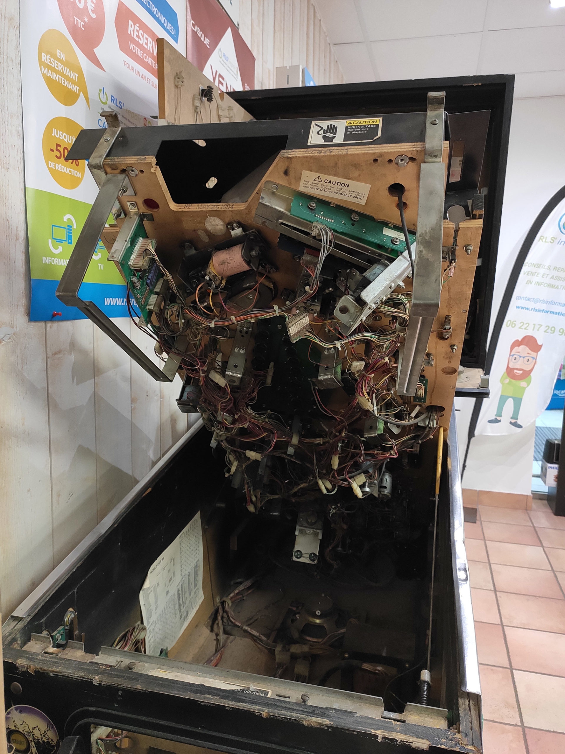 En fonction de la panne, la réparation d’un flipper peut prendre plusieurs jours à plusieurs semaines (ou mois pour celui-ci).